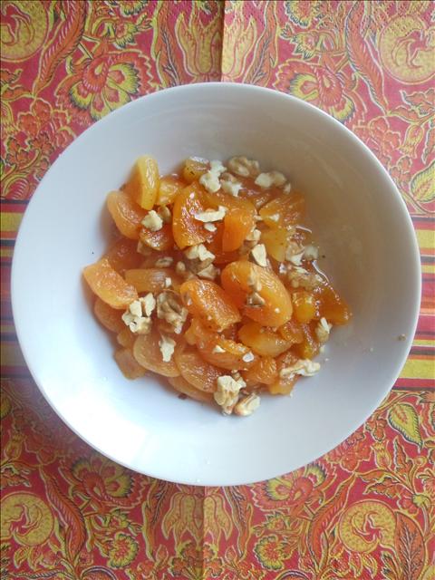 - Gekochte Aprikosen kalt stellen und mit gehackte Walnüsse servieren.