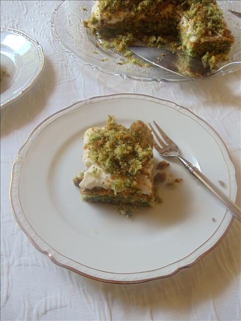 - In einem Rührschüssel Eier mit Zucker schaumig schlagen. Spinat, Pflanzenöl, Mehl, 1 Päkchen Vanilinzucker und Backpulver unter rühren. Die Mischung in den Backform giessen. Im Backofen goldbraun backen.