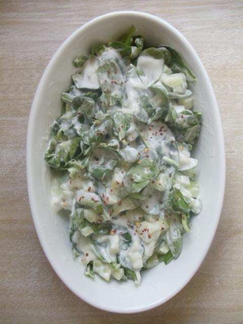 Als Beilage: Pitabrot, Salatgemüse, Tahinisoße